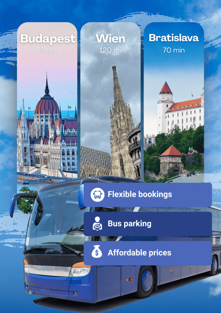- Buszbarát megközelítés és parkolás közvetlen közelben
